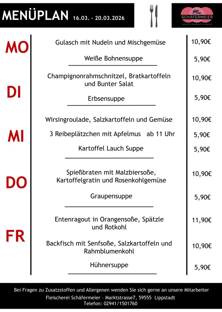 Menüpläne und Filialen