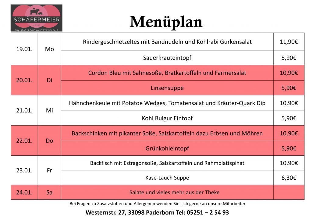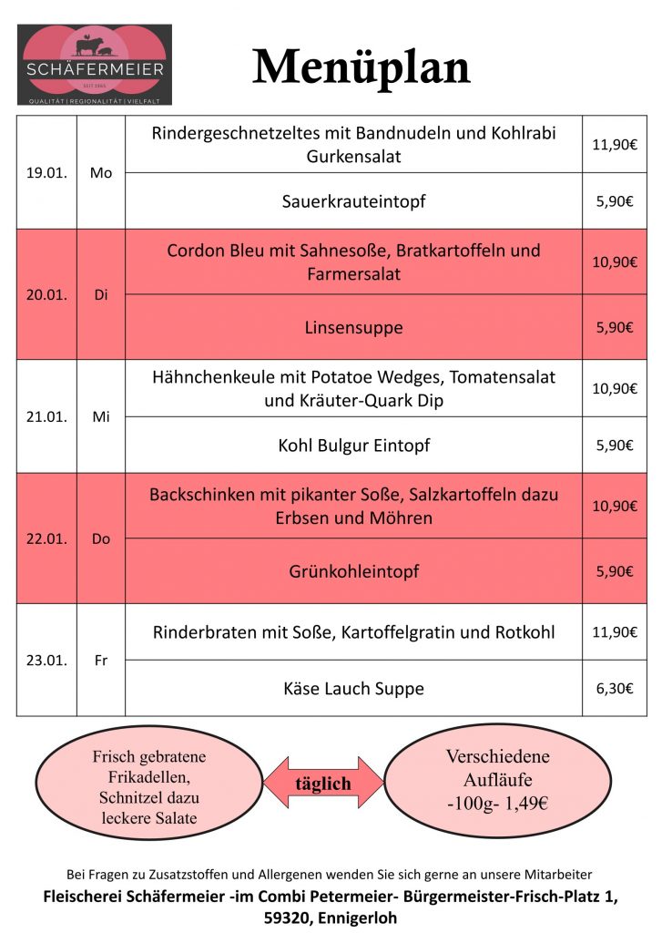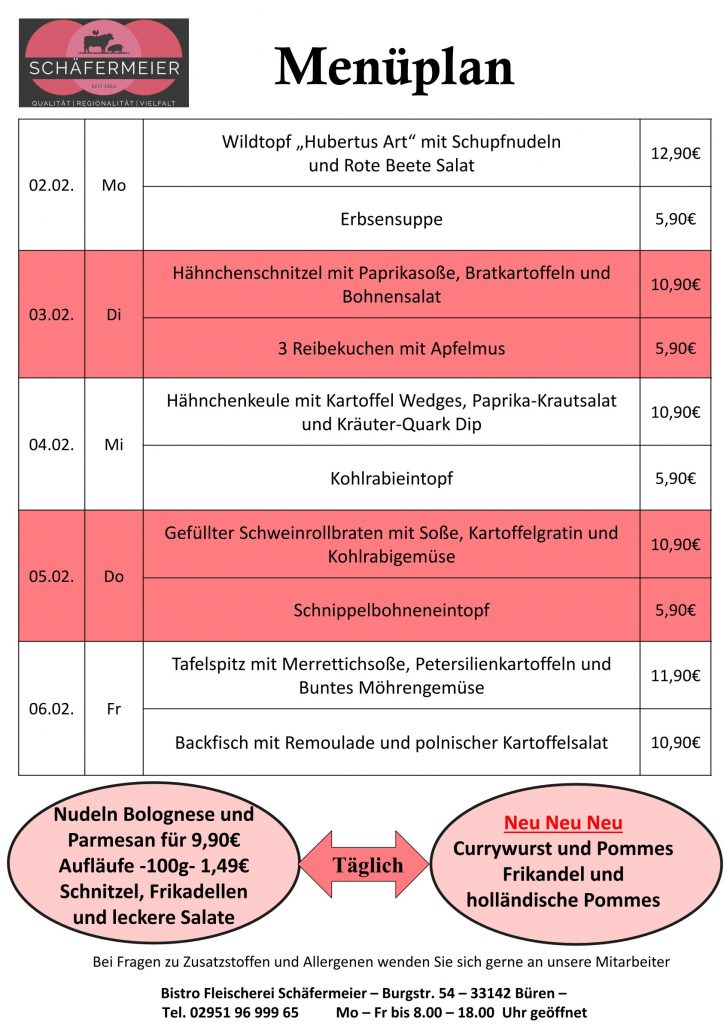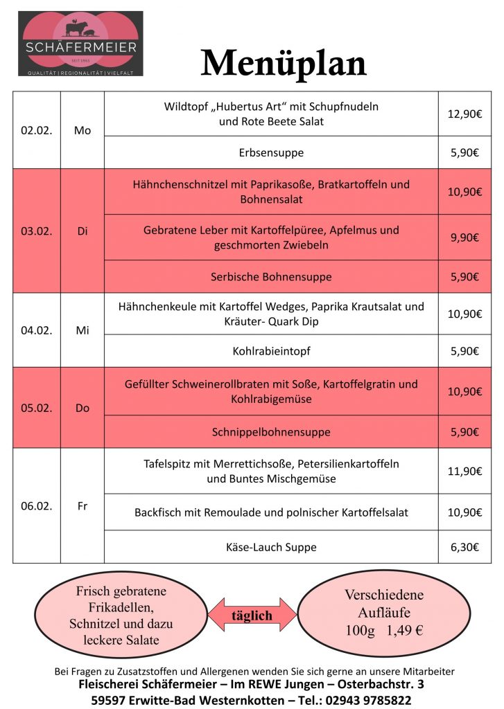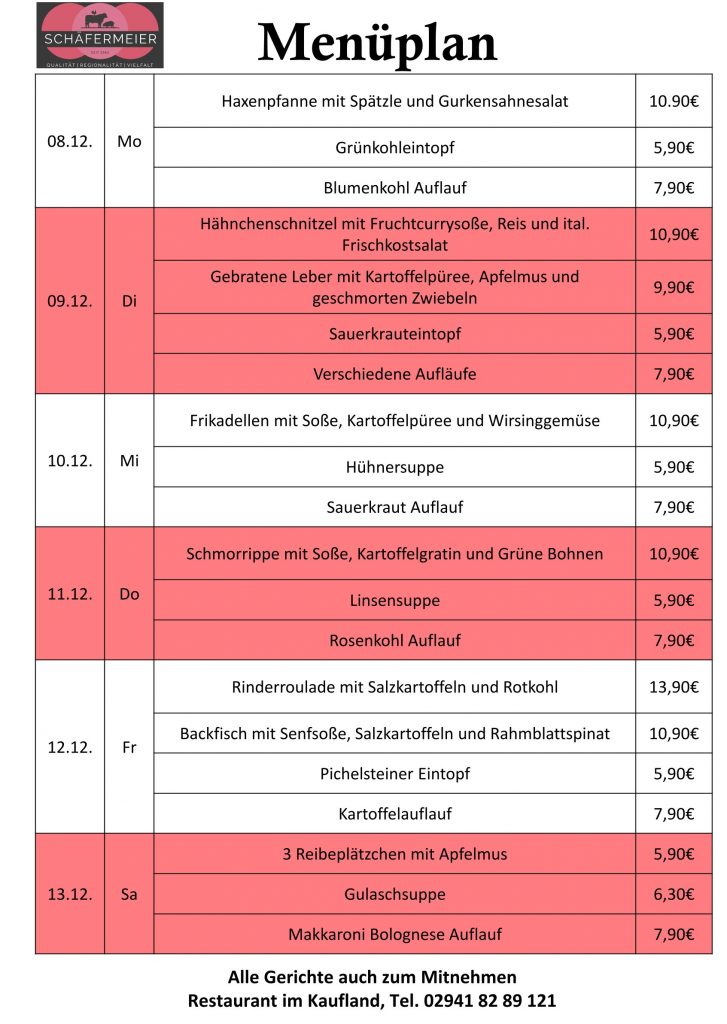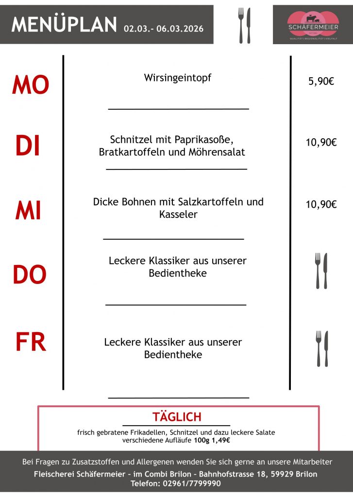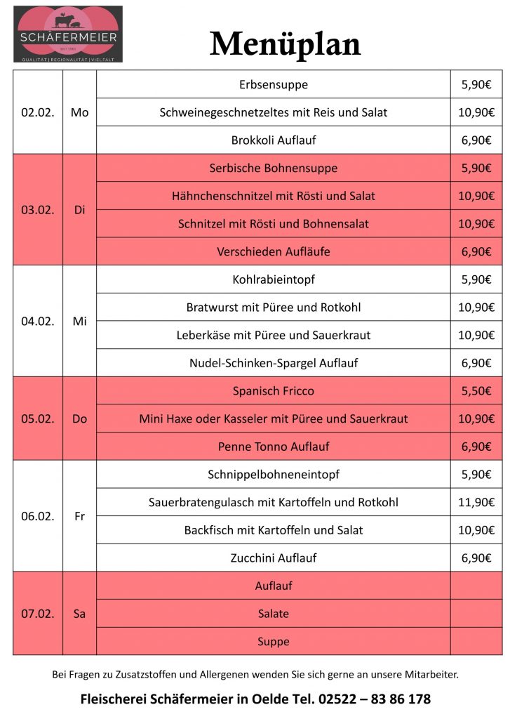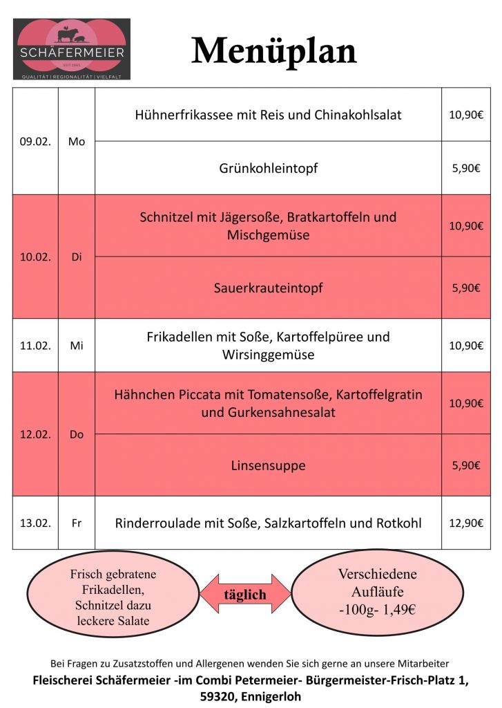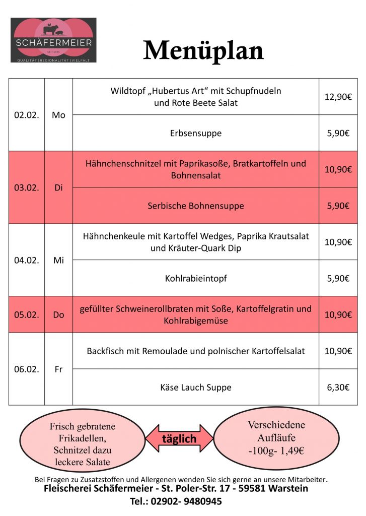 In bekannter Schäfermeier Qualität: Jeden Tag ein neues Menu, das kann nicht langweilig werden.