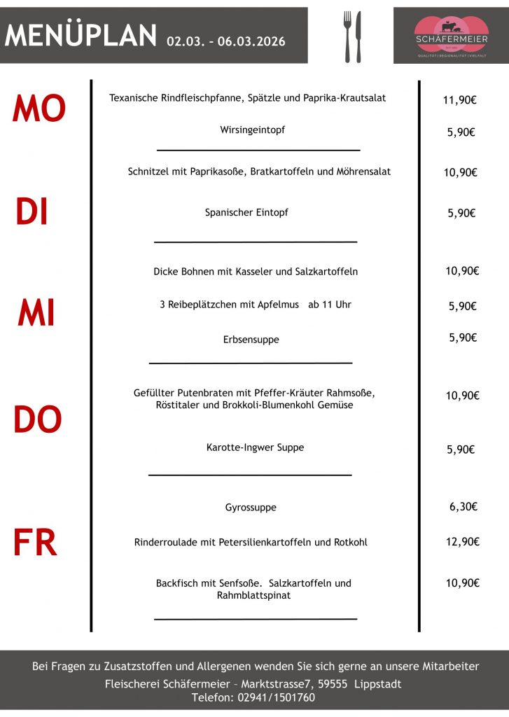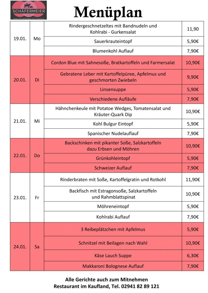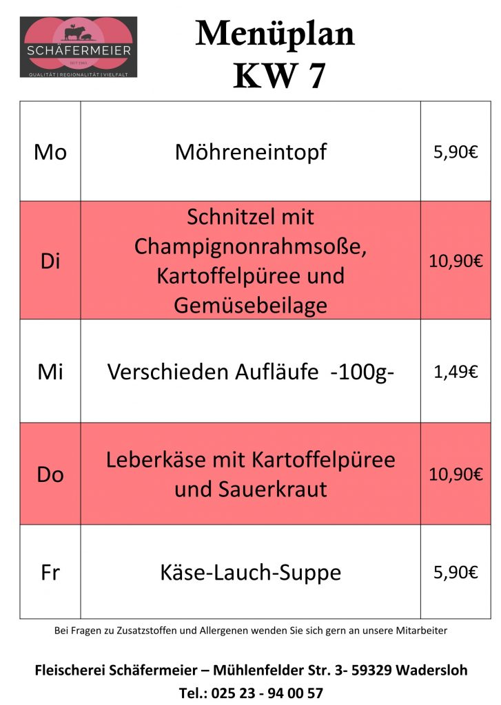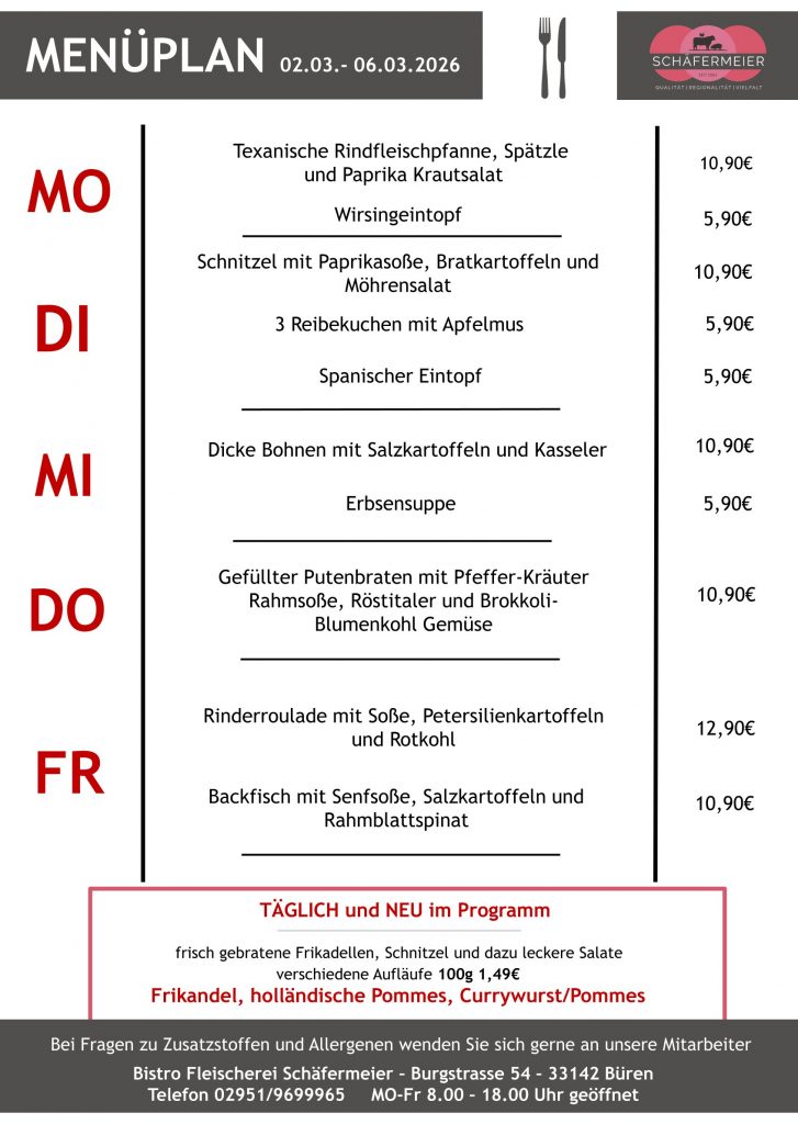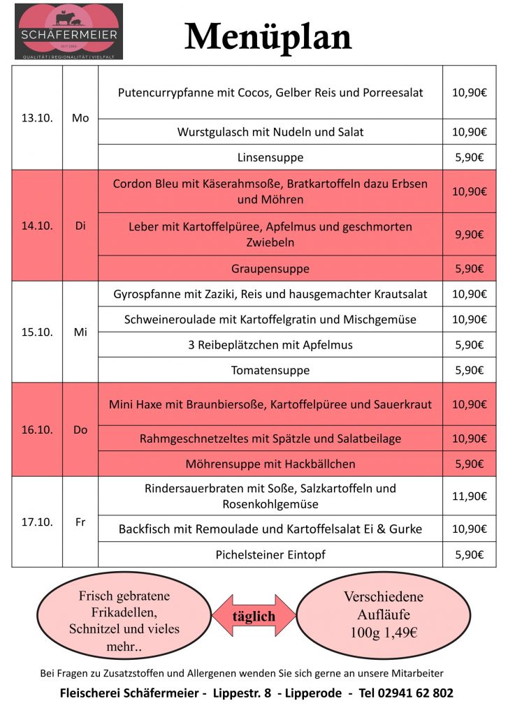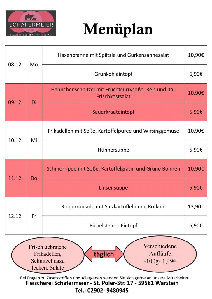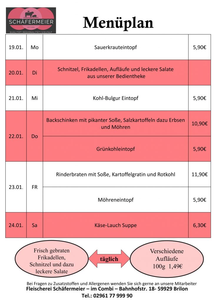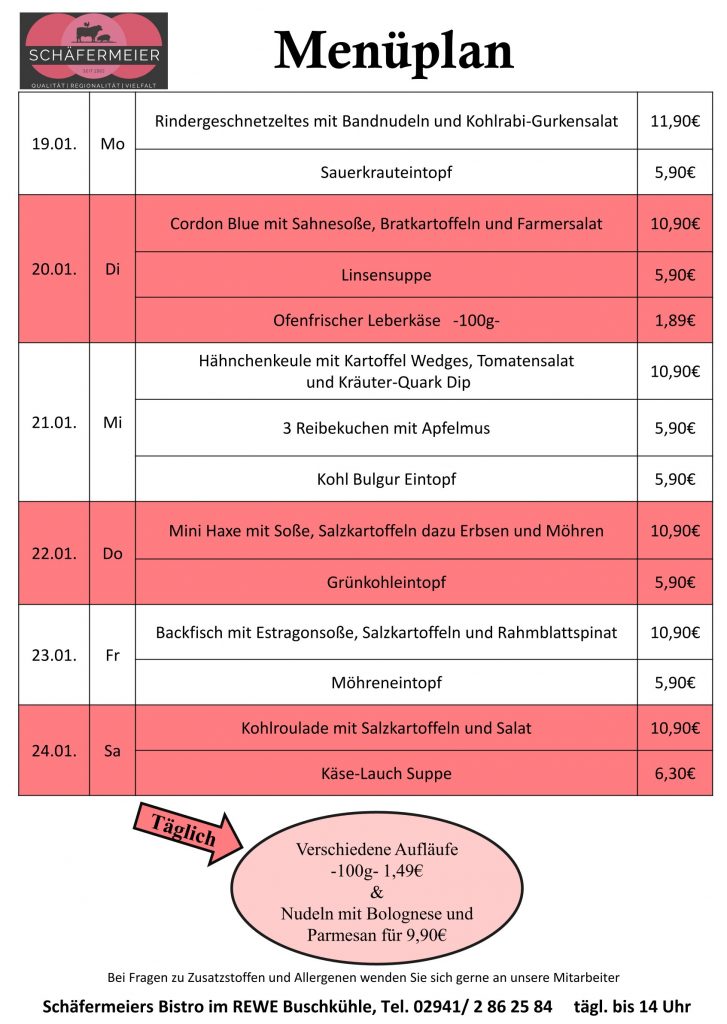 In bekannter Schäfermeier Qualität: Jeden Tag ein neues Menu, das kann nicht langweilig werden.