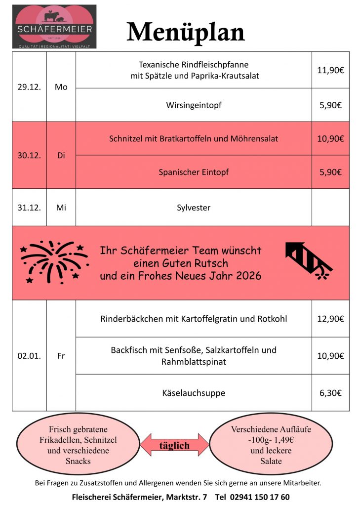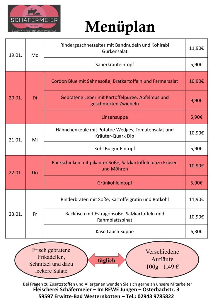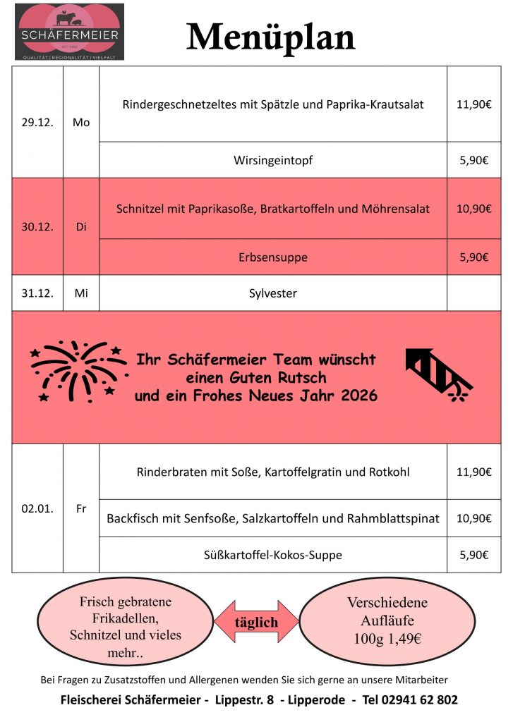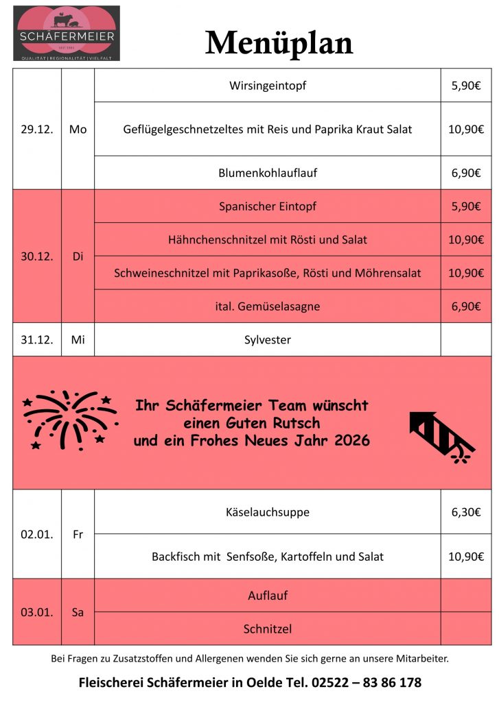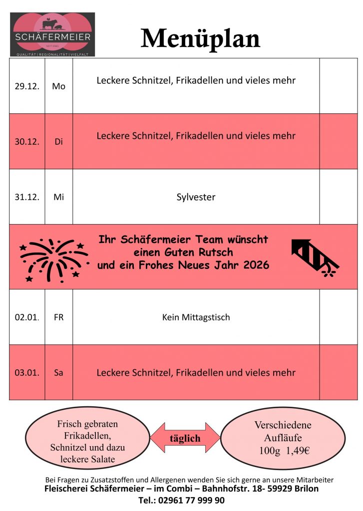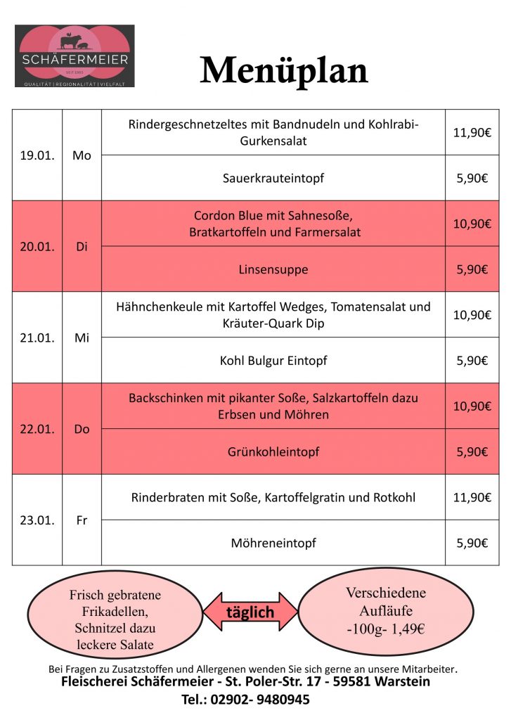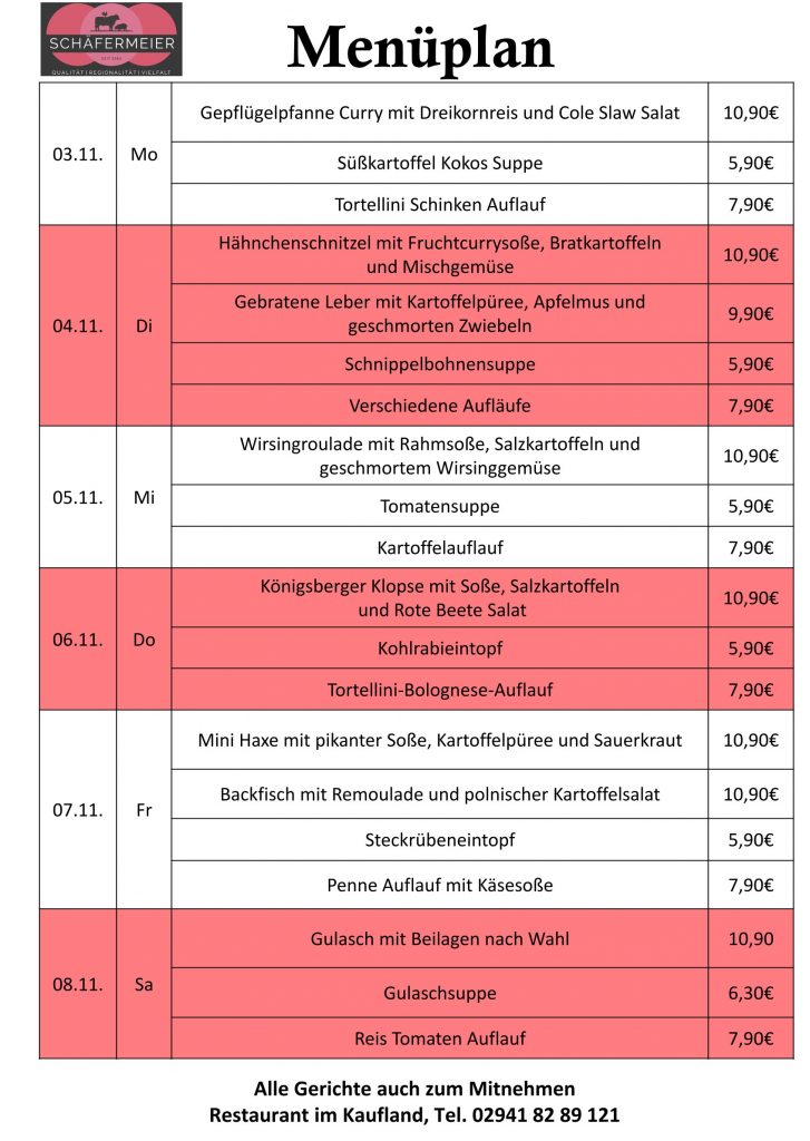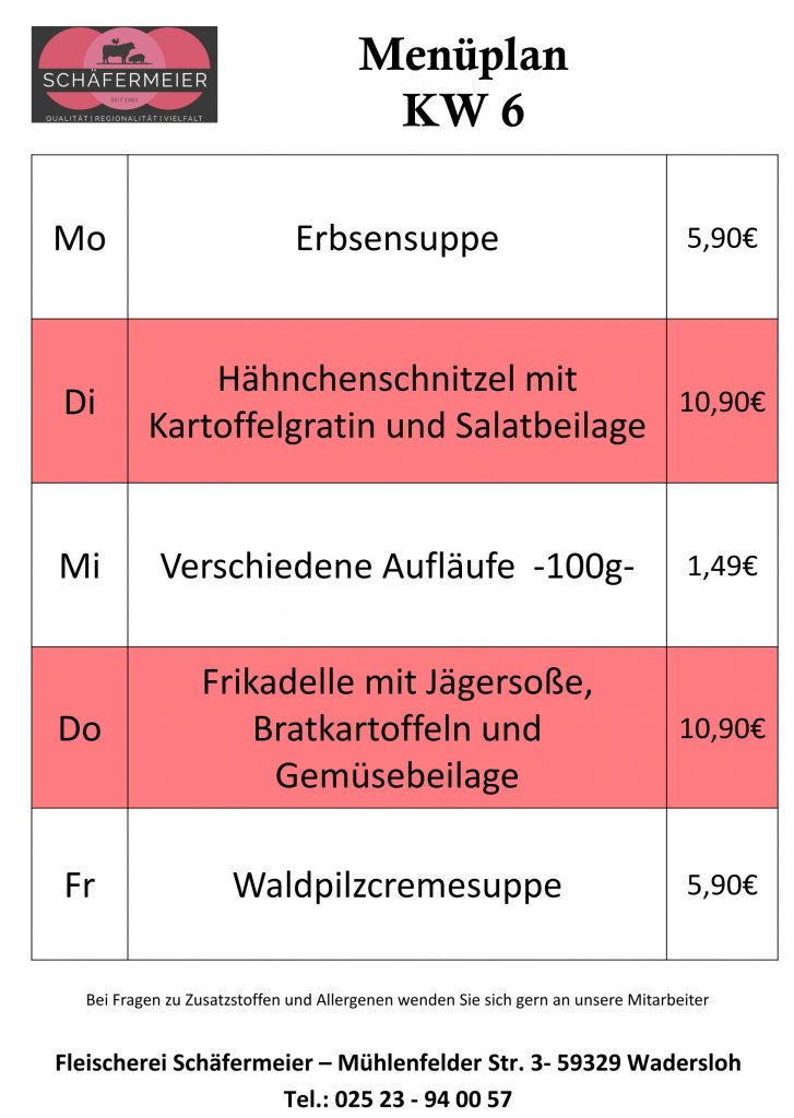 In bekannter Schäfermeier Qualität: Jeden Tag ein neues Menu, das kann nicht langweilig werden.