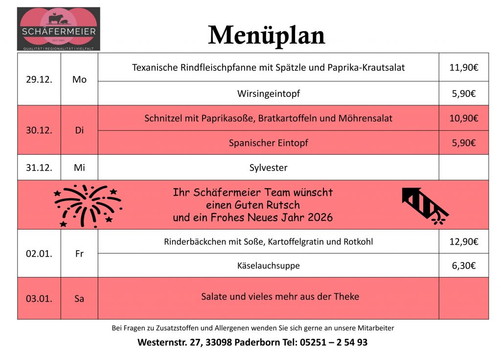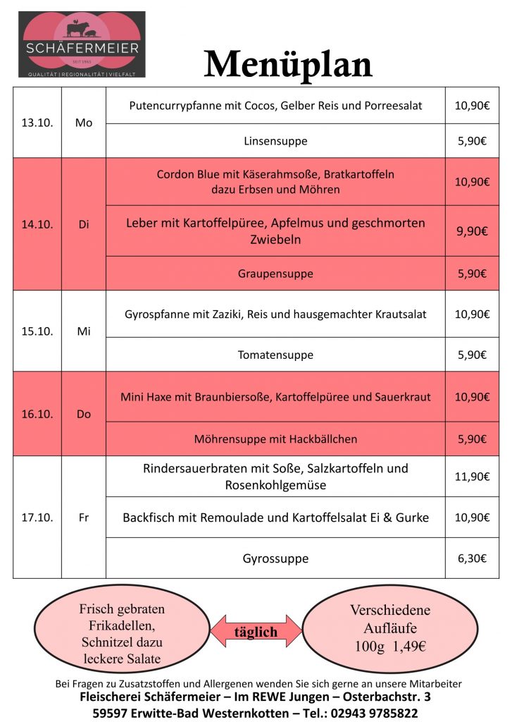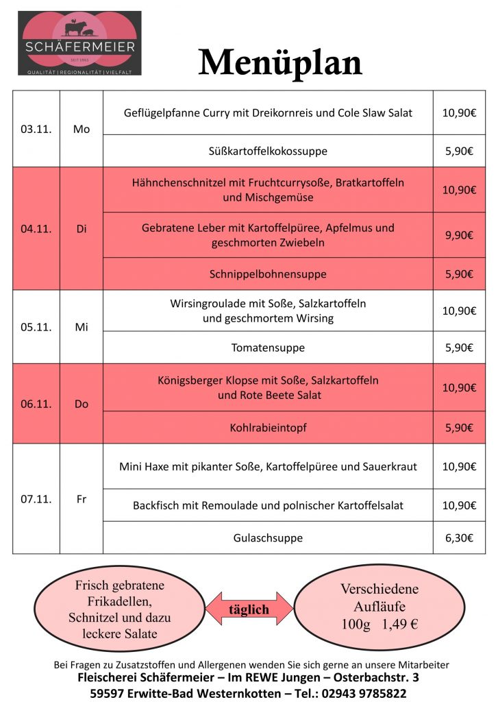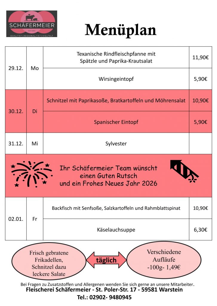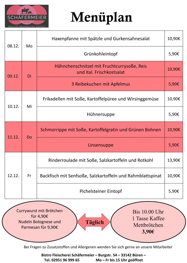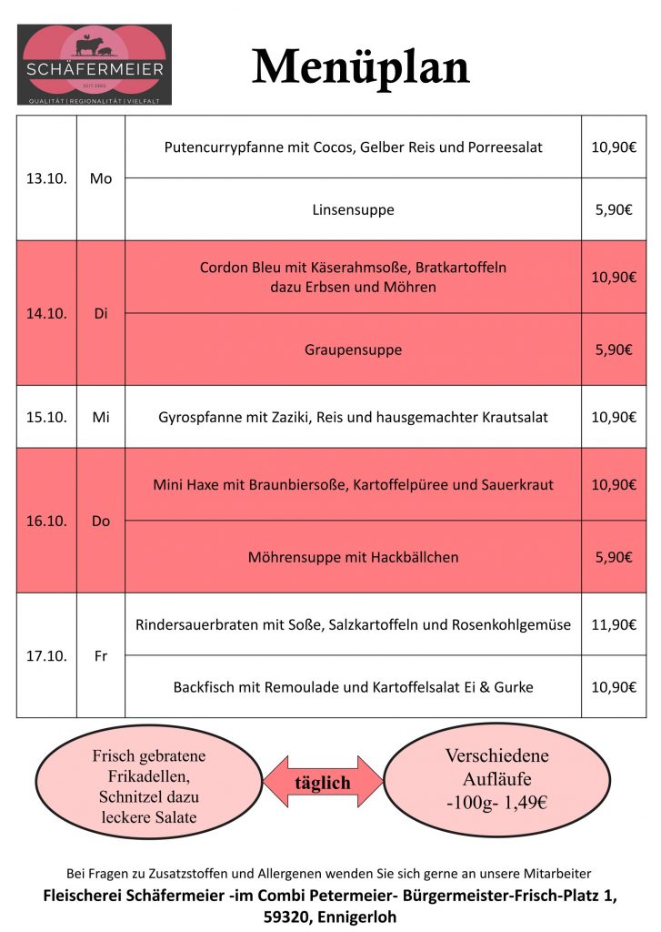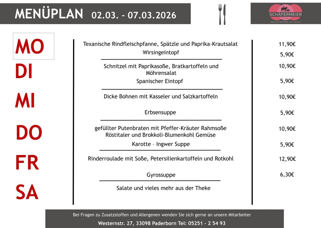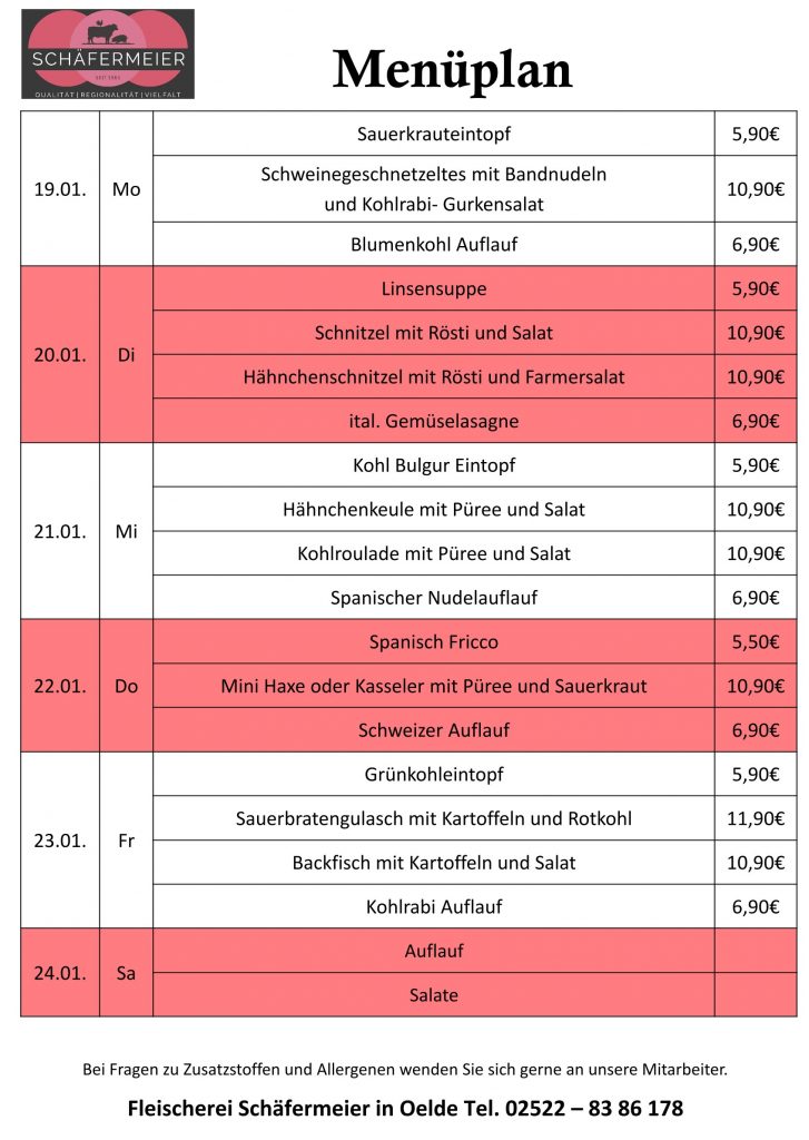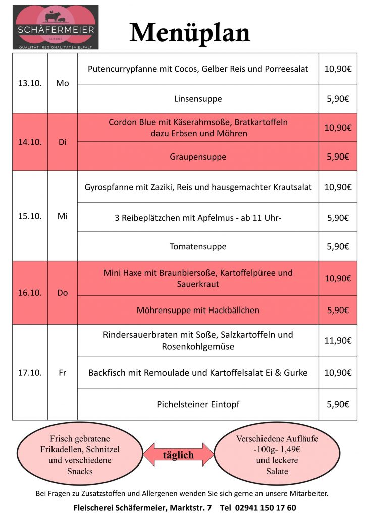 In bekannter Schäfermeier Qualität: Jeden Tag ein neues Menu, das kann nicht langweilig werden.