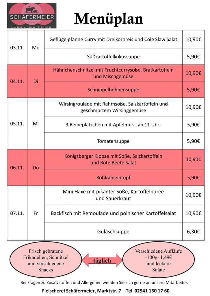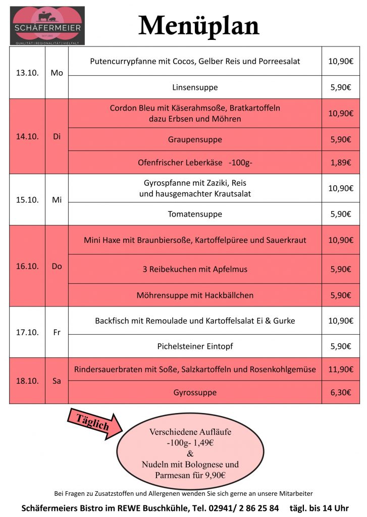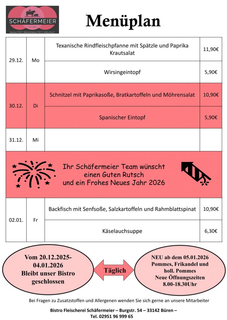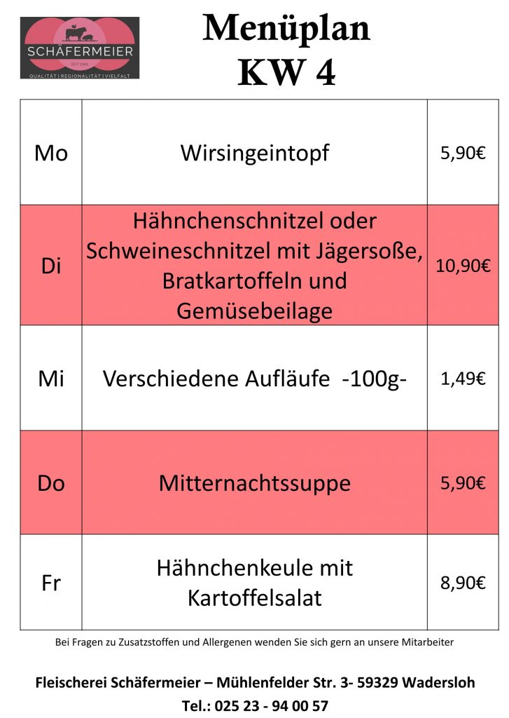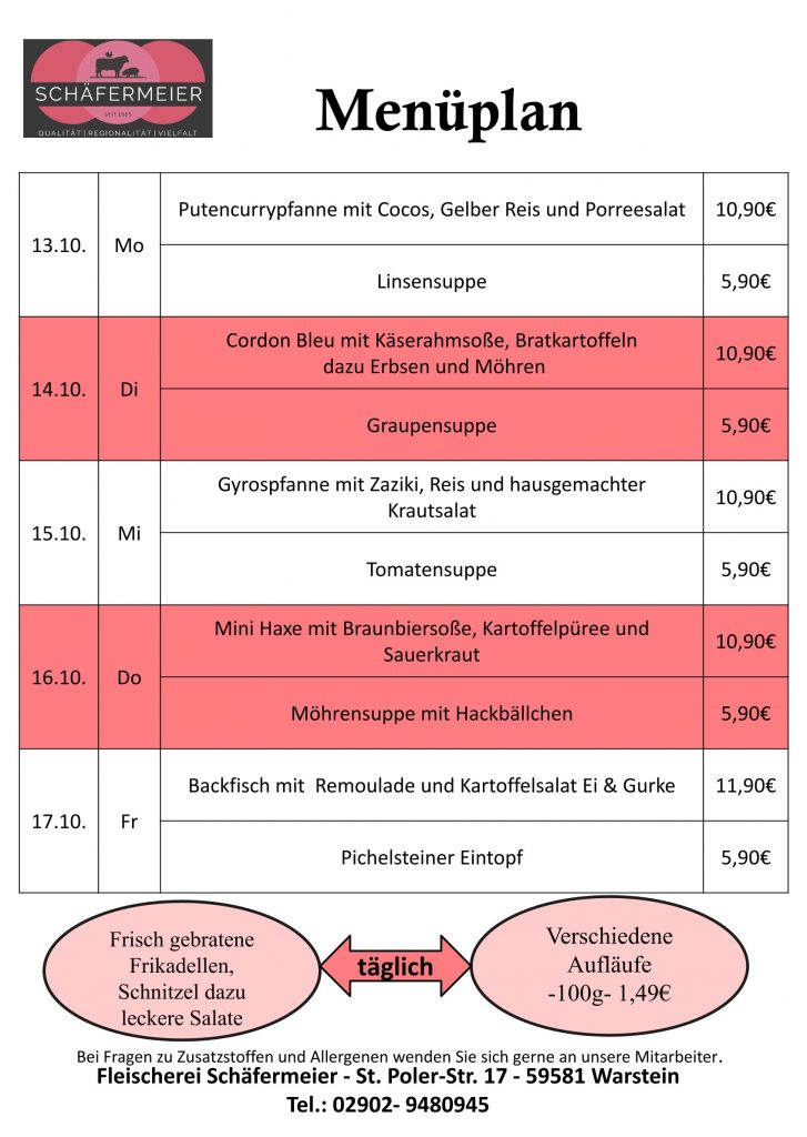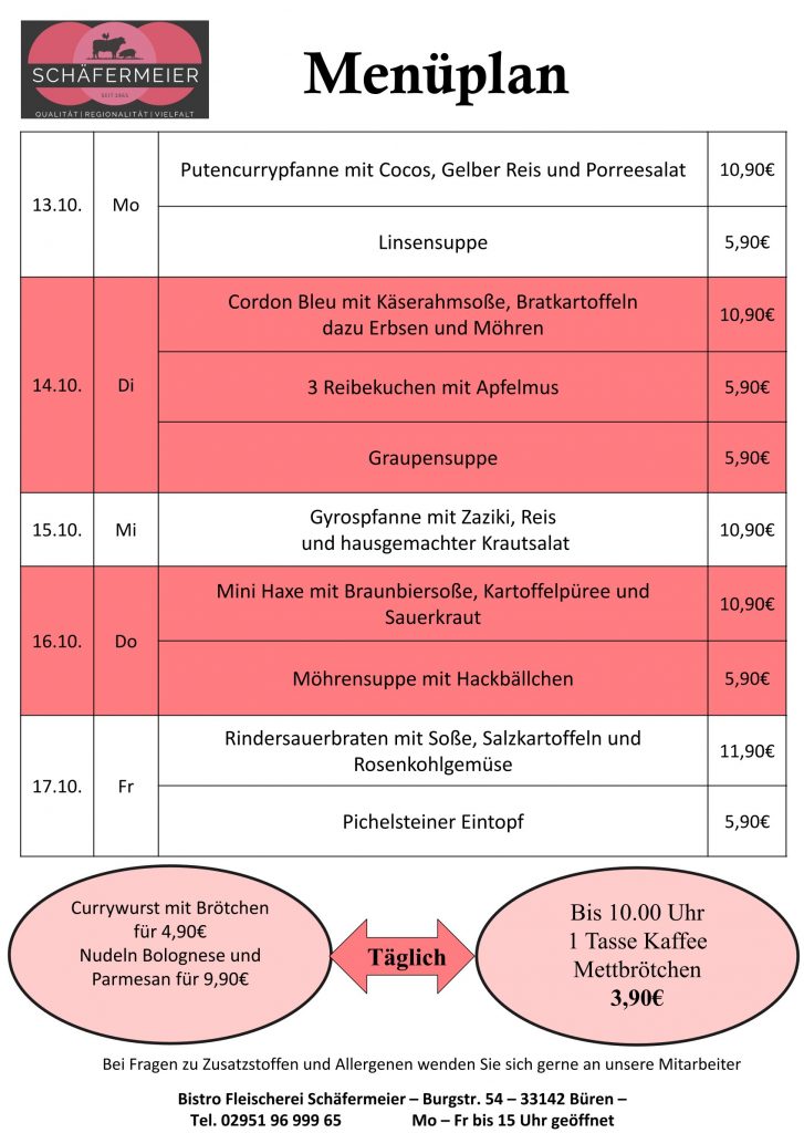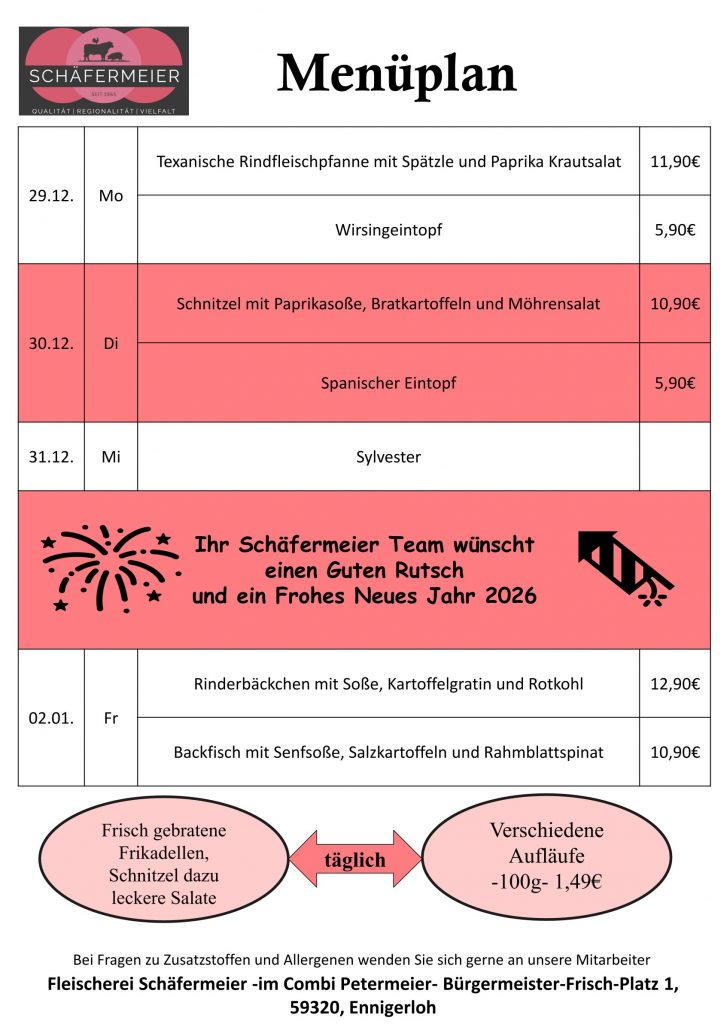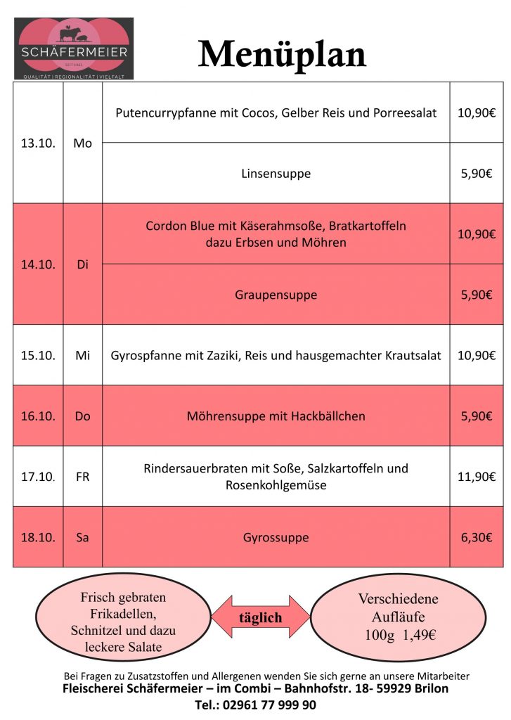 In bekannter Schäfermeier Qualität: Jeden Tag ein neues Menu, das kann nicht langweilig werden.