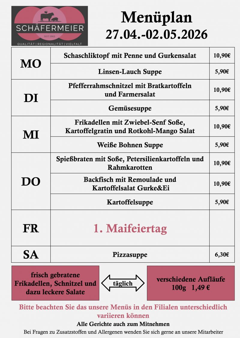 Die genauen Menüpläne der jeweiligen Filialen finden Sie unter „Menüpläne und Filialen“.